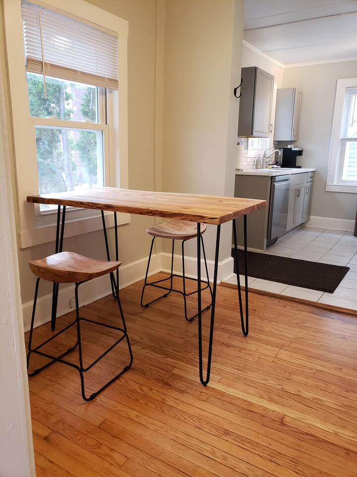 This house has been thoughtfully remodeled and appointed for our guests! You will find a combination of classic charm mixed with some modern touches. Two of the furniture pieces and wall hanging in the living room are hand built by our family.